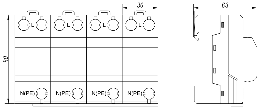圖4 HY01-F系列電涌保護模塊外形尺寸